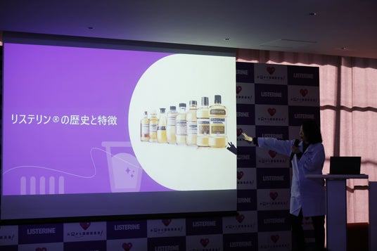 「『リステリン(R)』の始まりは1879年に外科手術用の消毒液からスタートしております。『リステリン(R)』という名前も、世界で初めて無菌手術を成功させたリスター博士にちなんで命名されたものでした。100年以上の歴史の中で、マウスウォッシュとしての有効性・安全性を示すエビデンスを蓄積しています。」