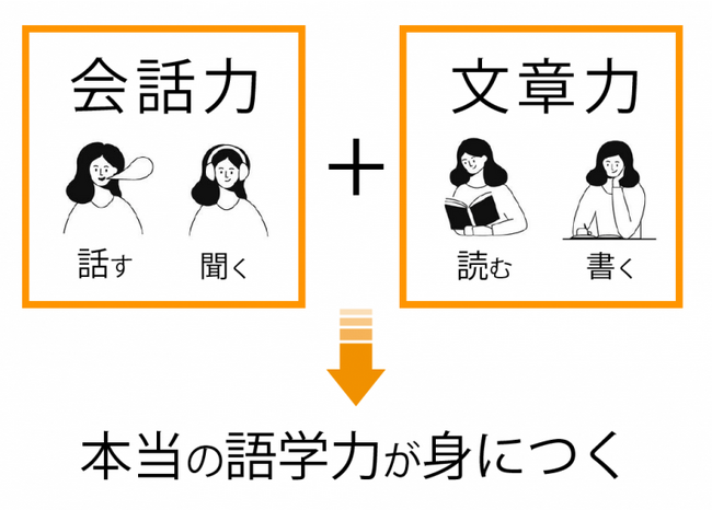 会話力(話す・聞く)+文章力(読む・書く)で本当の語学力が身につきます