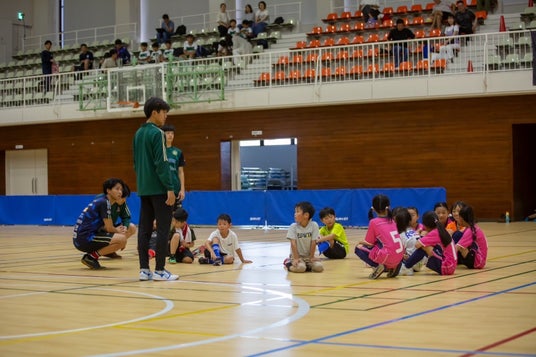 地域小学生のサッカー普及を目的とし、小学1~3年生を対象にサッカー体験会を実施しました。当日の天候は雨でしたが、屋内で天候に左右されずボールに触れ合いながら、楽しむことができました。