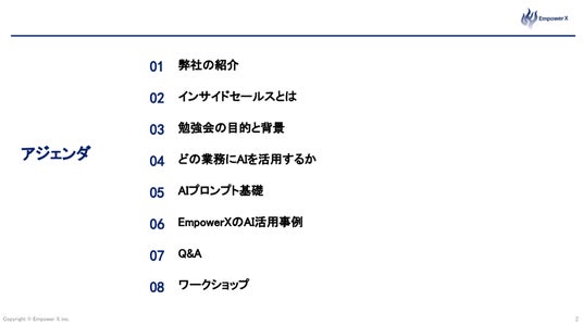 クライアントの事業成長に営業支援で伴走する株式会社EmpowerX(本社:東京都品川区、代表取締役社長:大野 将也)は、オリックス株式会社の広域事業部の営業担当者向けに、『AIを活用した営業プロセスを習得するための成功事例』に関する研修を実施し、その研修レポートを公開したことをお知らせします。