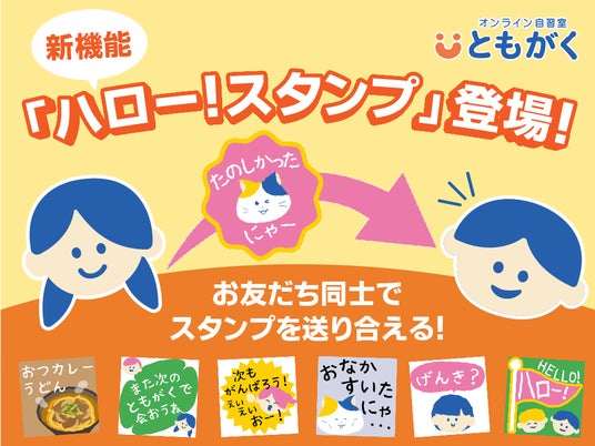 株式会社新学社(本社:京都市/代表取締役社長:山本 伸夫)は、オンライン自習室「ともがく」にて、子ども同士がスタンプを送り合える新機能「ハロー!スタンプ」をリリースしました。