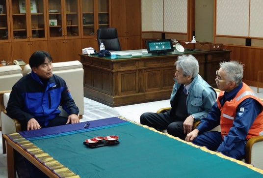 石川県庁では、馳知事から、いしかわ総合スポーツセンターに設置した1.5次避難所について、(1) 230名の受け入れが可能な体制を取り、1月12日現在で140名が避難しているが、いつオーバーフローになるか分からない状況にある、(2)その対応に当たる医療福祉スタッフの数が圧倒的に少ない―ことなどの現状を踏まえ、人員確保に向けた協力が要請されました。これに対して、松本会長は、石川県医師会と密に連携を取りながら、JMAT活動を通して医師を始めとする医療従事者の派遣に努める意向を伝えました。