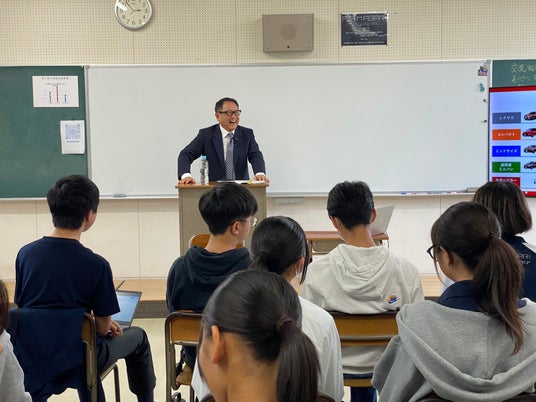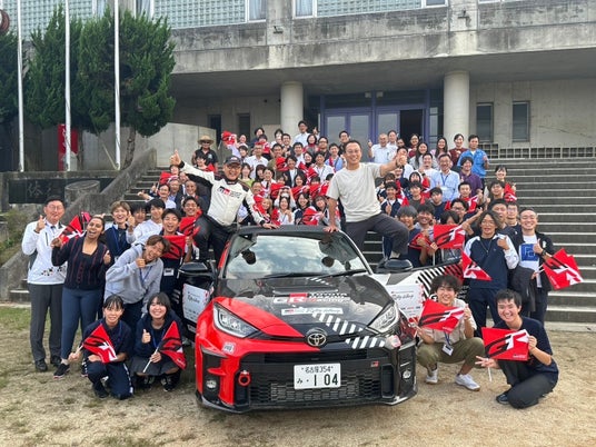 講義では生徒とのQ&Aセッションを通して、自分らしさや生き様を持つことの大切さ、これまで経験してきた困難をどのように乗り越えてきたのかについてお話しいただきました。授業後半では、ラリーカー「GRヤリス」の助手席に生徒を乗せ、豊田氏によるデモランを体験しました。