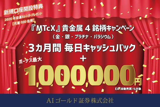 MTcX 貴金属4銘柄 毎日キャッシュバック + 累計ボーナス最大100万円 キャンペーン