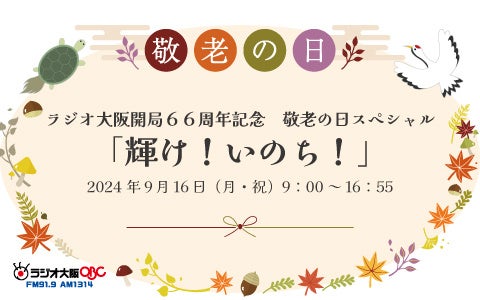 ラジオ大阪(OBC、大阪放送株式会社)では9月16日(月・祝) 敬老の日に、ラジオ大阪開局66周年記念 敬老の日スペシャル「輝け!いのち!」を放送します。