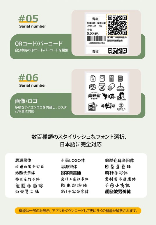 2.専用アプリでDIY、素材無料!QRコード・バーコード作成も、おしゃれなラベルを簡単に作れます!