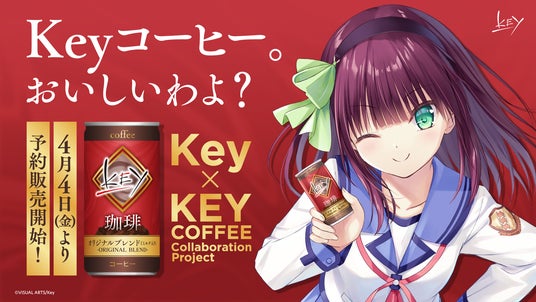 株式会社ビジュアルアーツ(本社:大阪府大阪市 代表取締役:天雲玄樹)と、キーコーヒー株式会社(本社:東京都港区 代表取締役社長:柴田裕)は、2023年以降のコラボレーション企画の第2弾として「Keyコラボ缶コーヒー」をキーコーヒー公式オンラインショップにて4月4日(金)12時より販売します。