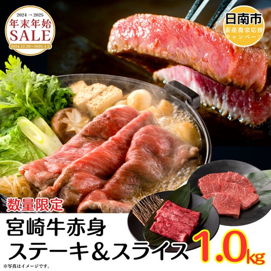 宮崎牛赤身ステーキ・スライス計1kgお肉の食べ始めにステーキとすき焼きはいかが?