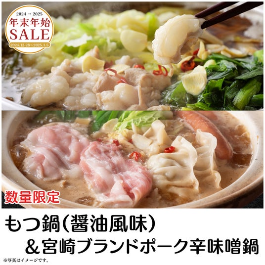 もつ鍋&宮崎ブランドポーク辛味噌鍋セットいっぱい食べる君が好き(ハート)よくばり鍋2セット!