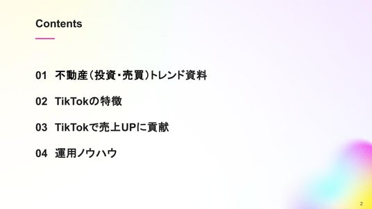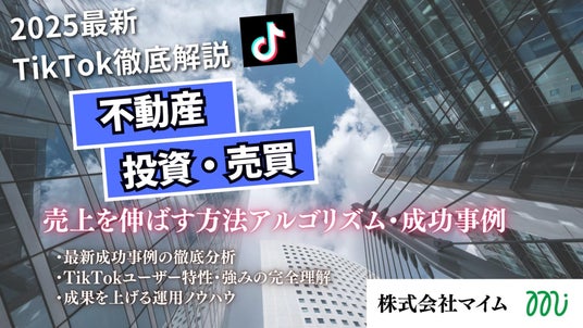 株式会社マイム(本社:東京都品川区、代表取締役社長:古川 湧一、以下「当社」)は、不動産投資・売買業者の皆様を対象に「2025年版TikTokトレンドレポート」を公開いたしました。本レポートは、TikTokを活用した最先端のプロモーション事例や成功パターン、そして結果に直結する戦略的な運用ノウハウを一冊に集約。