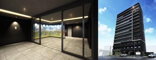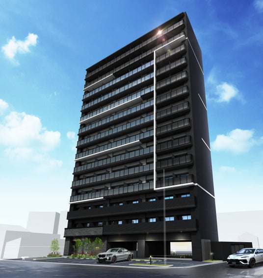 外観は、都会的で洗練された印象を与えるスタイリッシュなデザイン。縦のラインを強調したフォルムと素材のコントラストが、都市景観の中で確かな存在感を放ちます。