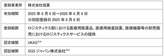 当社の子会社で医療用医薬品等卸売事業を行う株式会社琉薬(本社:沖縄県浦添市、代表取締役社長:比嘉勝也、以下「琉薬」といいます)は、品質マネジメントシステムに関する国際規格「ISO9001」の認証を管理本部ロジスティクス部において取得いたしましたので、下記のとおりお知らせいたします。