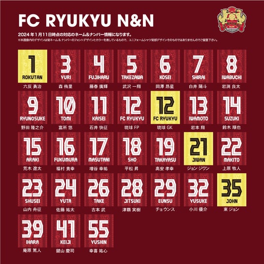 2024シーズン登録選手ネーム&ナンバー・#12 FC RYUKYU