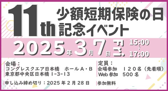 一般社団法人日本少額短期保険協会 (東京都中央区八丁堀 会長:花岡裕之、以下「当協会」)は3月7日(金)に開催します「少額短期保険(ミニ)の日記念イベント」の申し込み受け付けを開始します。