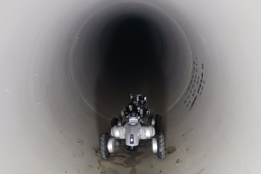 当日は、内径1,100mmの下水道管(埋設済)内を対象に、地上からの遠隔操縦により四足歩行ロボットを約140m走行させ、管内の映像取得を行いました。