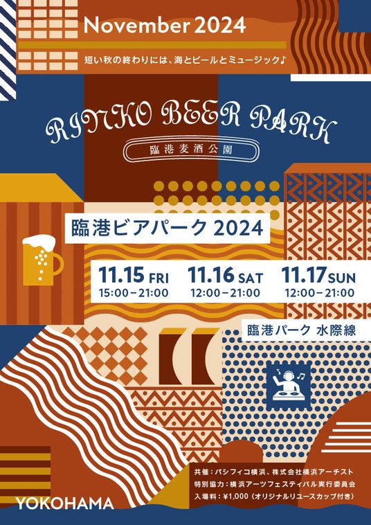 パシフィコ横浜(正式名称:株式会社横浜国際平和会議場、所在地:横浜市西区、代表取締役社長: 林 琢己)、株式会社横浜アーチスト(所在地:横浜市中区、代表取締役:関 裕之)は、ライブエンターテインメントのフェスティバル「Live!横浜2024」と連携し、2024年11月15日(金)・16日(土)・17日(日)の3日間、「臨港ビアパーク2024」を開催します。