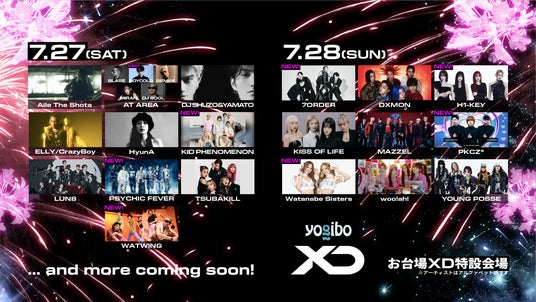 XD実行委員会は、東京都お台場のXD特設会場(臨海副都心 青海R地区)にて、2024年7月27日(土)と28日(日)の2日間、全国から30,000人が集結する「XD World Music Festival presented by Yogibo」(以下、XD)の第二弾アーティストを発表いたします。