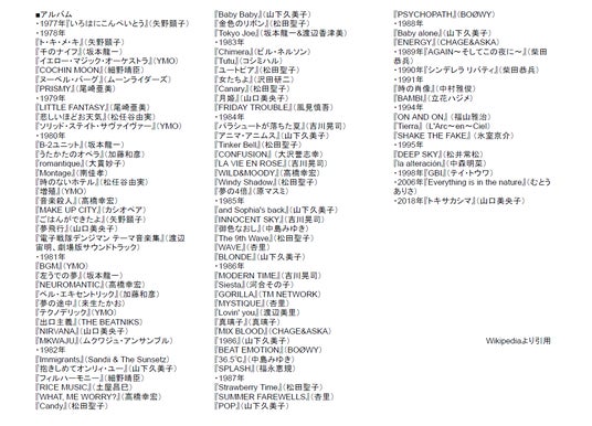 (※1)松武秀樹氏がレコーディングに参加した主な作品