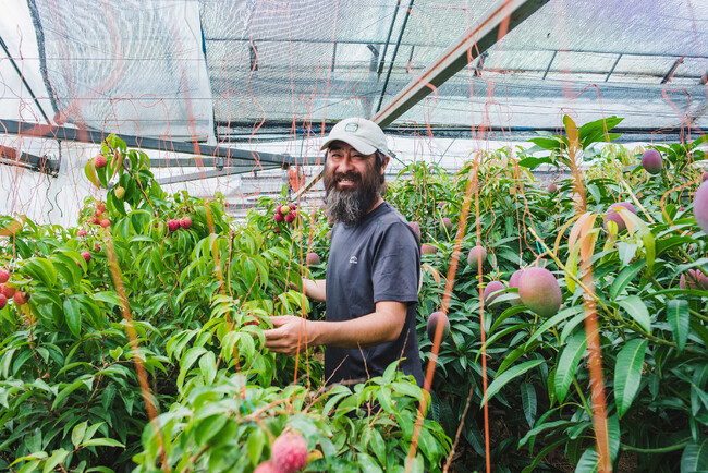 先代からアップルマンゴーのハウス栽培を続けてきた山下農園は、その知見を生かし、国産品の割合は1%ともいわれる希少なライチ栽培に積極的に取り組む、宮崎県にある農園です。
