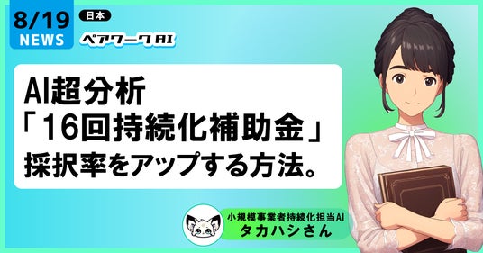 繁忙期前の今こそ、ChatGPTを超えた補助金専門AIをマスターする時。採択実績300件以上の支援機関が開発。1週間で習得する実践的AI活用術「ペアワークAI学院」冬期講習の受付開始。