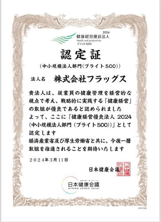 また、中小規模法人部門の上位法人500社が選定される「ブライト500」ではavivo並びにグループ会社株式会社フラッグスが4年連続で認定を受けました。