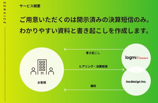 Sansanグループのログミー株式会社(本社:東京都港区、代表取締役社長:石本 卓也)は、上場企業の決算説明会などの書き起こしや個人投資家向けセミナーを配信するIRメディア「ログミーFinance(ファイナンス)」において、インクデザイン株式会社(本社:東京都墨田区、代表取締役:鈴木潤、以下「インクデザイン」)と業務提携を行い、共同開発をした決算説明資料の作成支援サービス「かんたんIR」の提供を2024年3月1日(金)より開始することをお知らせします。