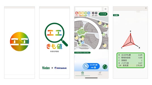 ミックウェアは、大阪・関西万博での実証実験において、きんでんが考案した快適性評価値「エエきも値」の分布状況を会場地図上にマッピングして視える化し、実証実験協力者に文字どおり“エエ気持ち”になれる空間情報を提供するためのスマートフォンアプリを開発しました。