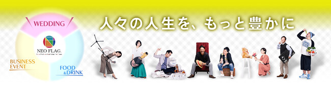 記念日プロデュース会社NEO FLAG.は、「人々の人生をもっと豊かに」を企業理念として、ウェディング・イベントプロデュース・レストラン事業を展開しております。
