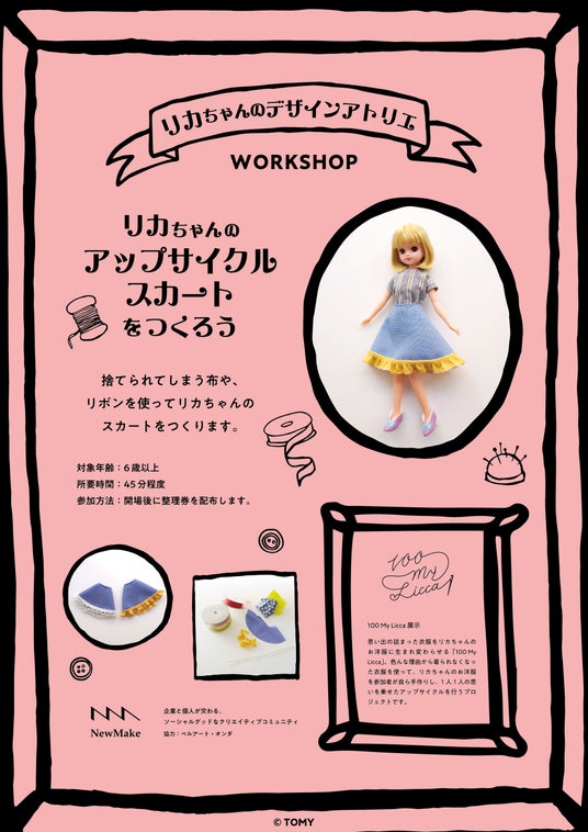 「リカちゃんのアップサイクルラボ」にて展開予定のメニューを実際にご体感いただけるワークショップを実施いたします。また、「100 My Licca」で制作した、計18体のリカちゃんも展示予定です。