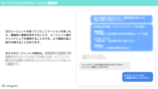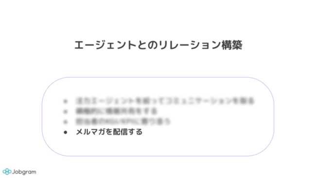 会社や事業の特徴、チームの魅力、募集ポジションの業務内容や必須要件、そういった情報をエージェントの担当者にしっかりと理解してもらい、自社の採用にエージェント担当者を巻き込んでいく必要があります。