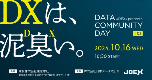 株式会社日本データ取引所(本社:東京都中央区、代表取締役:森田直一、以下「当社」)は、来たる2024年10月16日(水)、東京・丸の内にて交流型カンファレンス「DATA COMMUNITY DAY #02 ~DXは、泥臭い。~」を開催します。