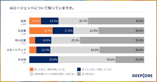 AI特化型ベンチャーキャピタル(VC)である株式会社ディープコア(以下「DEEPCORE」)は、20~50代のビジネスパーソンを対象に「AIエージェントについての調査」を実施し、600人から回答を得ました。