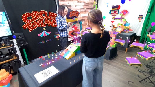 curiosity株式会社から配信中のAR(※1)アプリ「AVATAVI(アバタビ)」AVATAVIスポットで体験できるマルチプレイアクションゲーム「Circus Toyland(サーカストイランド)」をXR Kaigi 2023年オフライン会場にて体験展示いたします。今回の展示ではモバイル端末に加えMeta Quest 3上でもご体験頂けます。現実世界に現れるちいさなサーカス団のフィールドでARゲームをお楽しみください!
