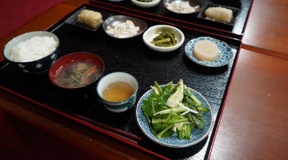 一日体験修行で「絶品精進料理」をご提供当寺院の一日体験修行では、心身を整える修行に加えて、お昼に精進料理をお召し上がりいただけます。