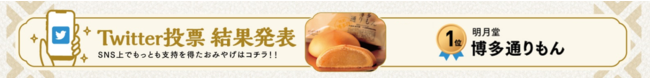 推しみやげへの熱いツイートもたくさんいただいた中、通なおみやげ第1位は130票獲得の明月堂「通りもん」!Twitter投票でも「通りもん」が1位となりました。