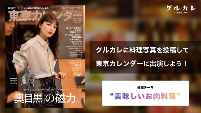 本企画は、実施期間中に「グルカレ by 東京カレンダー」で「美味しいお肉料理」のテーマにあわせた投稿を行っていただいた方やお店を対象に、東京カレンダーが運営する各サービスでご紹介をさせていただく企画です。