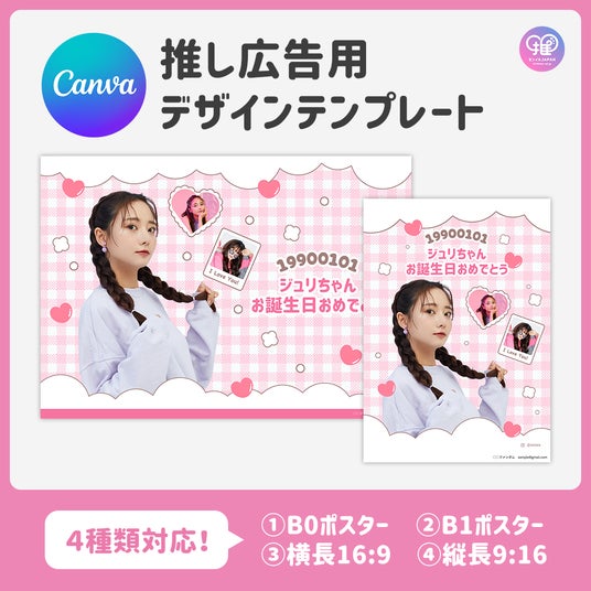 CanvaテンプレDLプランとは、推し広告(センイル広告/応援広告)に特化したデザインテンプレートです。