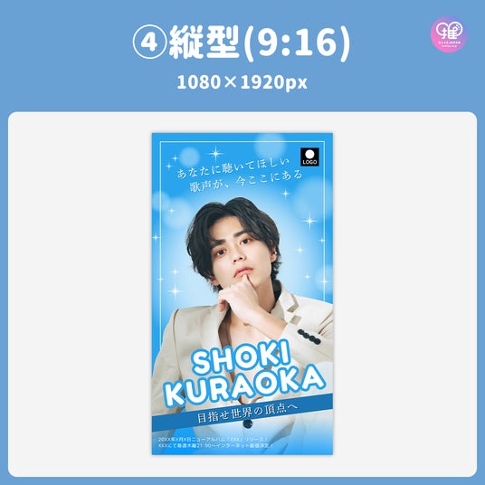 用途に合わせて使い分けることができるため、オフラインからオンラインまで幅広い推し広告(センイル広告/応援広告)のデザイン制作に活用していただけます。