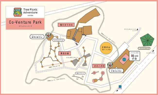 福井県池田町は、令和 5 年 4 月 29 日(土)に「Tree Picnic Adventure IKEDA」に「コベンチャーパーク」「ジュニアディスカバリーコース」を新設オープン、また新設宿泊棟「キャビン」も使用開始します。 「Tree Picnic Adventure IKEDA」は平成28年4月27日に「木や森を教材に、みんなつながっていく仕組みや施設づくりを目指す」というコンセプトのもと開業。開業以来、多くの方々にご来場いただき、アスレチック体験などを通じて森や木との触れ合いを楽しんでいただきました。 新設の「コベンチャーパーク」は小さなお子様や保護者の方々に、森の中でのあそびまわりを最大限楽しんでいただける設計を目指しました。エリア内にはパークを回遊する「スネークライン(モノレール)」、休憩や食事、おもちゃ遊びが楽しめる「陽だまりの丘」も誕生します。 「ジュニアディスカバリーコース」は既存の「ディスカバリーコース」と「キッズコース」の中間を想定したコース。「ディスカバリーコース」と同じ安全装備を着用・操作し、成長過程のお子様たちに本格的なアスレチックのエントリーコースに挑戦していただきます。 そのほかにも、より多くの方にジップラインを体験いただけるように、これまで徒歩移動だったスタート地点までの区間に「ドラゴンライン(モノレール)」を設置。また、新設宿泊棟「キャビン」の使用開始など、さらに充実した自然の中での体験機会をご用意しています。 福井県池田町は豊かな森を活かし、守り育て、持続可能な社会を作っていくために、100年後も人と森とのつながりを紡いでいくことを目的とした「木望の森100年プロジェクト」を推進しています。 これからも、大人から子どもまで多世代のみなさまが、森や木の体験を通じて好奇心や探求心を高める場を目指してまいります。■「Tree Picnic Adventure IKEDA」新設施設について【コベンチャーパーク】予約なく来場し利用できる自由度高いエリア。高低差を利用した「勇者の森(アスレチック)」を中心に、休憩や食事、おもちゃ遊びが楽しめる「陽だまりの丘」を併設し、これまで身長制限でアクティビティが利用できなかったお子様や保護者のみなさんにも、森の中での「あそびまわり」を最大限楽しんでいただけるパークです。