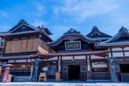 道後温泉は有馬温泉や白浜温泉と並ぶ、日本三古湯のひとつ。その昔は聖徳太子が入浴したといわれ、その際に残したとされる文章が刻まれています。そこには「太陽や月が平等に光を分け与えるように、神の湯もまた平等に人々に恩恵を与えている。このように分け隔てなく物事を行うことが理想である」と伝えています。
