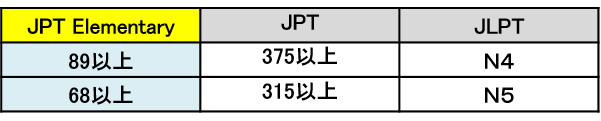 ※JPT ElementaryではJPTのスコアも併記されますので、JPTスコアとして利用できます。