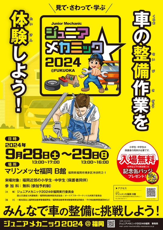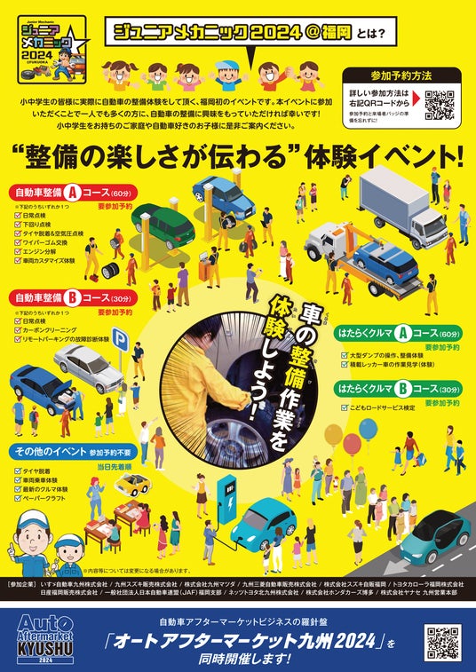『ジュニアメカニック2024@福岡』は、九州・福岡エリアを中心とした自動車関連事業者向けのビジネス展示会『オートアフターマーケット九州2024』と同時に開催されます。