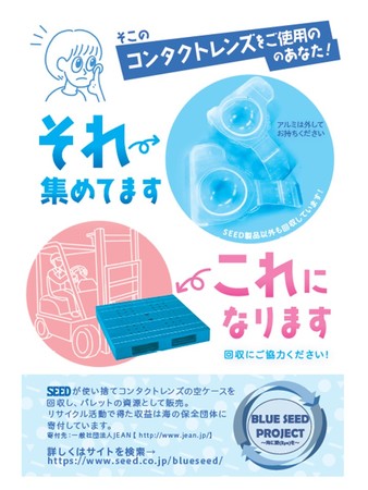 当社のカーボンニュートラルと向き合うサーキュラーエコノミーシステムを構築した、使い捨てコンタクトレンズ空ケースの回収活動「BLUE SEED PROJECT」もコラボレーションし、地域から環境を考えていく「weリサイクル」の取り組みとして、商店や保育施設など全7カ所に、使い捨てコンタクトレンズ空ケースの回収ボックスを設置いたします。