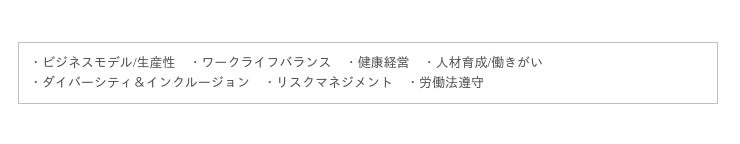 この度の「ホワイト企業認定」では『ワーク・ライフバランス』や『ビジネスモデル/生産性』の項目でとくに高得点を取得することができました。