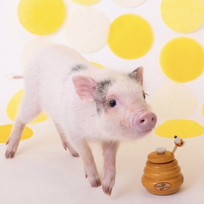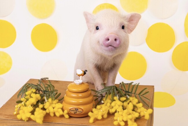 イオンモール広島府中店では「マイクロブタさんとハチミツのおうち」というコンセプトを掲げ、絵本のような世界観の中で、マイクロブタさんとのひとときをお楽しみいただけます。