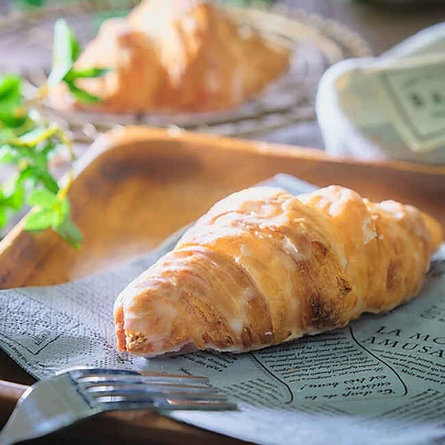 クロワッサンの上を、甘~いグレーズでしっかりとコーティングした商品です。一口噛むたびに、シュガーの甘さとバターの香りが混ざり合い、口の中が幸福感で溢れます。