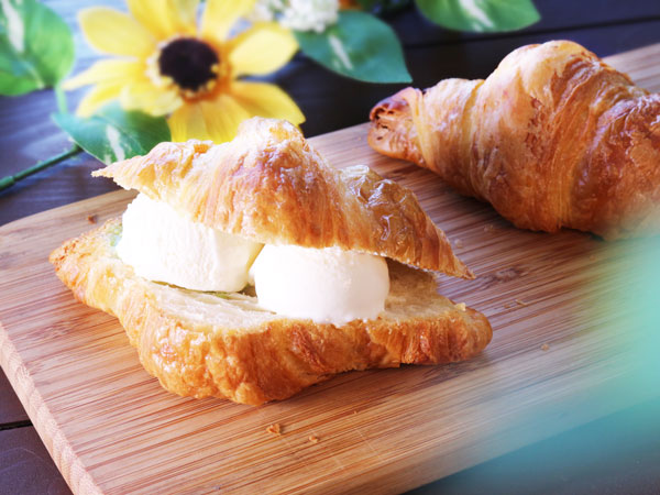 クロワッサンにアイスクリームをサンドし、アツアツのクロワッサンにほんのりと溶けて染み込むアイスクリームとの相性が絶品の一品です。夏季限定で、暑い日の食べ歩きにもピッタリの商品です。
