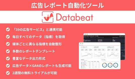 Databeatは、アジト株式会社が開発・提供する広告レポート自動化ツールです。