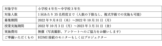 ※応募多数の場合、本活動の趣旨を踏まえ、よりロボットと接する機会が少ないと推察される学校(地方校、小規模校等)を優先することがございますので、ご了承ください。