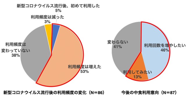 新型コロナウイルス流行後に中食の利用頻度が増えた家庭は半数以上。利用回数を増やしたいと考えている家庭も多い